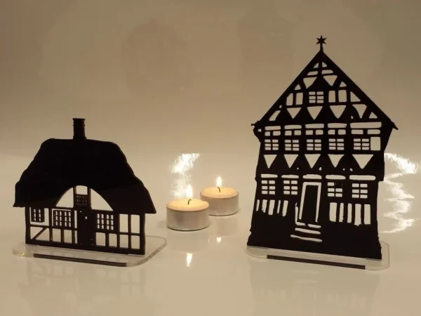 - Historiske huse skåret 3 mm. sort akryl